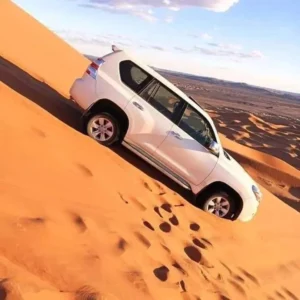 Merzouga, the local tourist center, is located near the edge of the dunes. A number of companies offer dromedary trips from Merzouga and into the desert, taking tourists on overnight trips several kilometres into the erg, which is enough to bring the village out of sight. Erg Chebbi’s proximity to the tourist center has led to the Saharan erg sometimes being referred to as “dunes of Merzouga.”